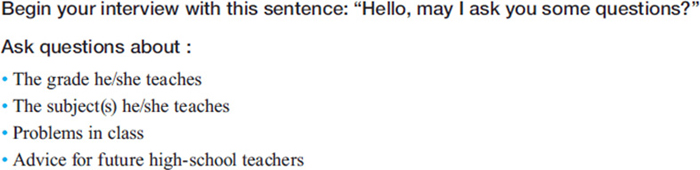 下の例題では、「高校の先生にインタビューをする」という設定で受験者が質問を行います。 -